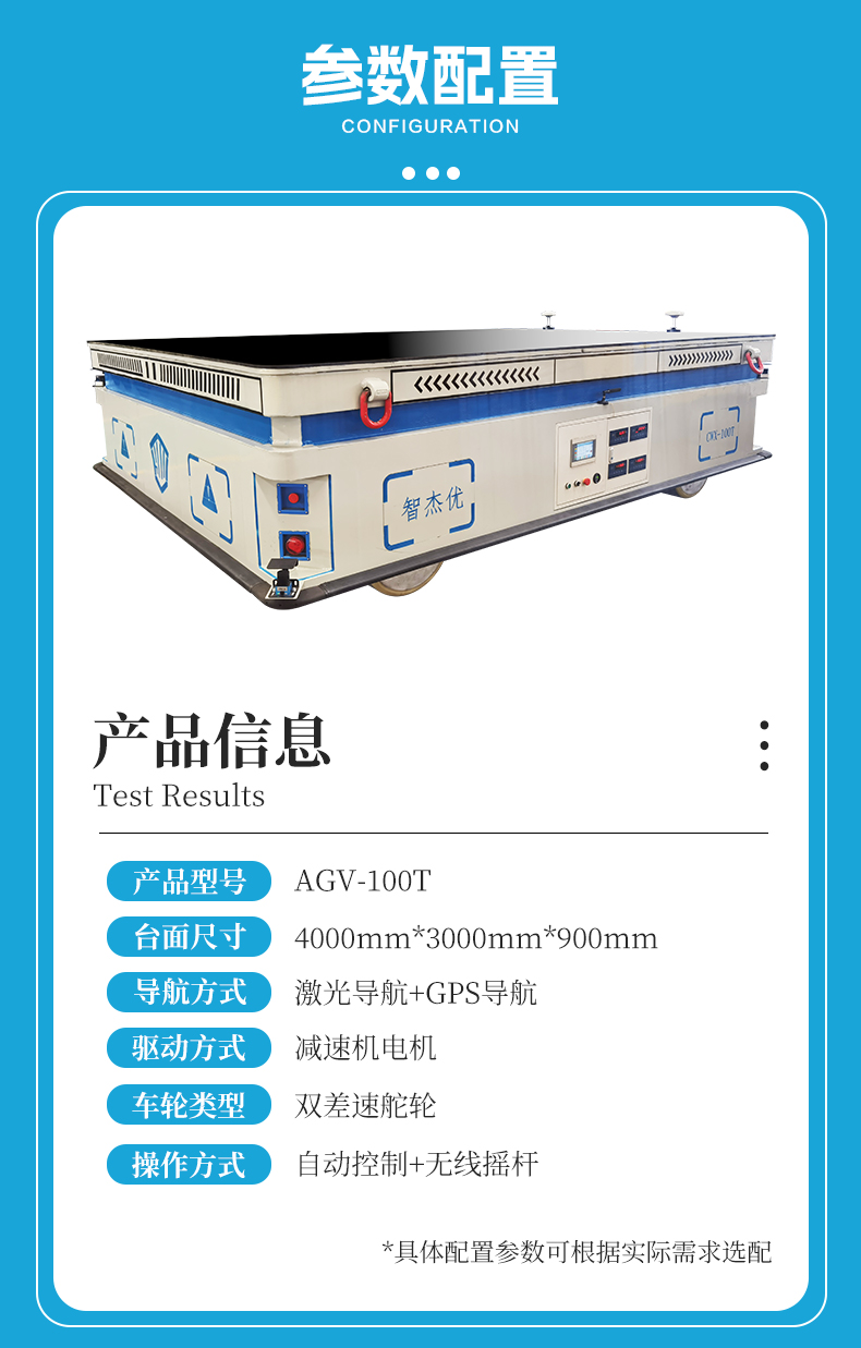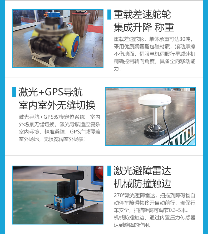 描   述: 100噸重載AGV,百噸級(jí)***承載、激光+GPS雙重智能導(dǎo)航、全向靈活移動(dòng),為工業(yè)重型物料轉(zhuǎn)運(yùn)提供新的解決方案。4米*3米平臺(tái)設(shè)計(jì),搭載自主研發(fā)雙差速舵輪驅(qū)動(dòng)系統(tǒng),四輪協(xié)同輕松駕馭100噸載荷,滾動(dòng)摩擦不傷地面,集成頂升、稱重一體化模塊,實(shí)現(xiàn)重載運(yùn)輸與實(shí)時(shí)***稱重,激光導(dǎo)航+GPS雙模定位系統(tǒng),室內(nèi)外場(chǎng)景無(wú)縫切換,無(wú)線模塊支持多種通訊協(xié)議,遠(yuǎn)程調(diào)度、無(wú)線遙控、線控手柄三種操作模式自由切換,適配全場(chǎng)