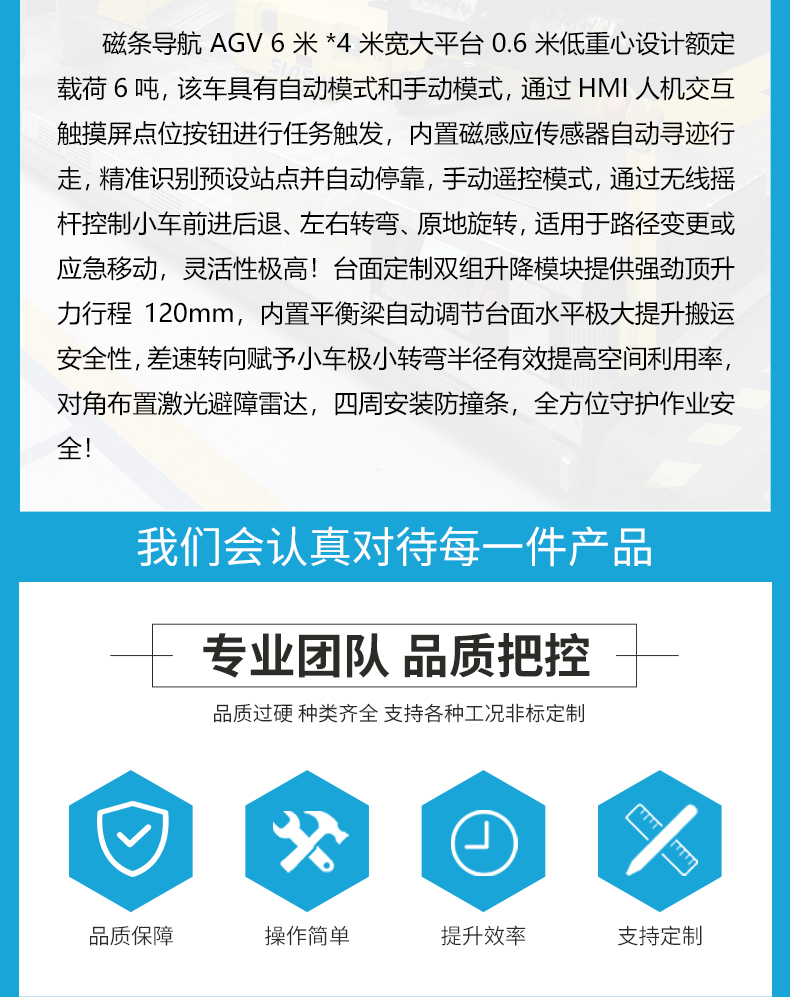 描   述: 專為重載、高精度搬運(yùn)場景設(shè)計的磁條導(dǎo)航AGV,它集高度自動化、操作便捷性和多重安全防護(hù)于一身,是現(xiàn)代化工廠、倉儲物流實(shí)現(xiàn)智能化升級的理想選擇!