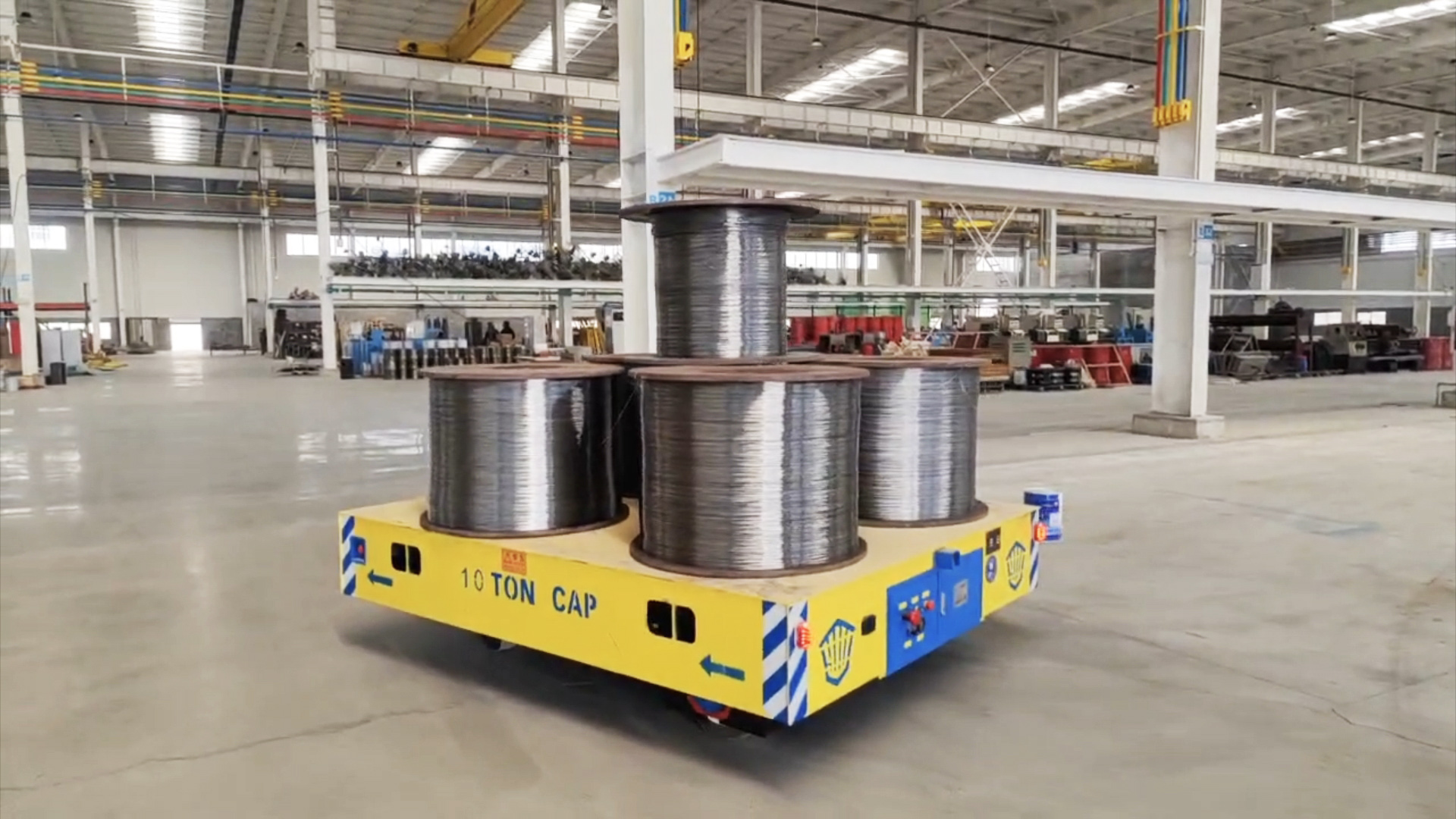 整車(chē)采用高強(qiáng)度鋼板焊接,長(zhǎng)2.5米寬2米的緊湊尺寸下實(shí)現(xiàn)10噸的額定載重,配備平衡梁裝置,有限分散線卷載荷壓力,確保運(yùn)輸過(guò)程平穩(wěn)無(wú)傾斜。