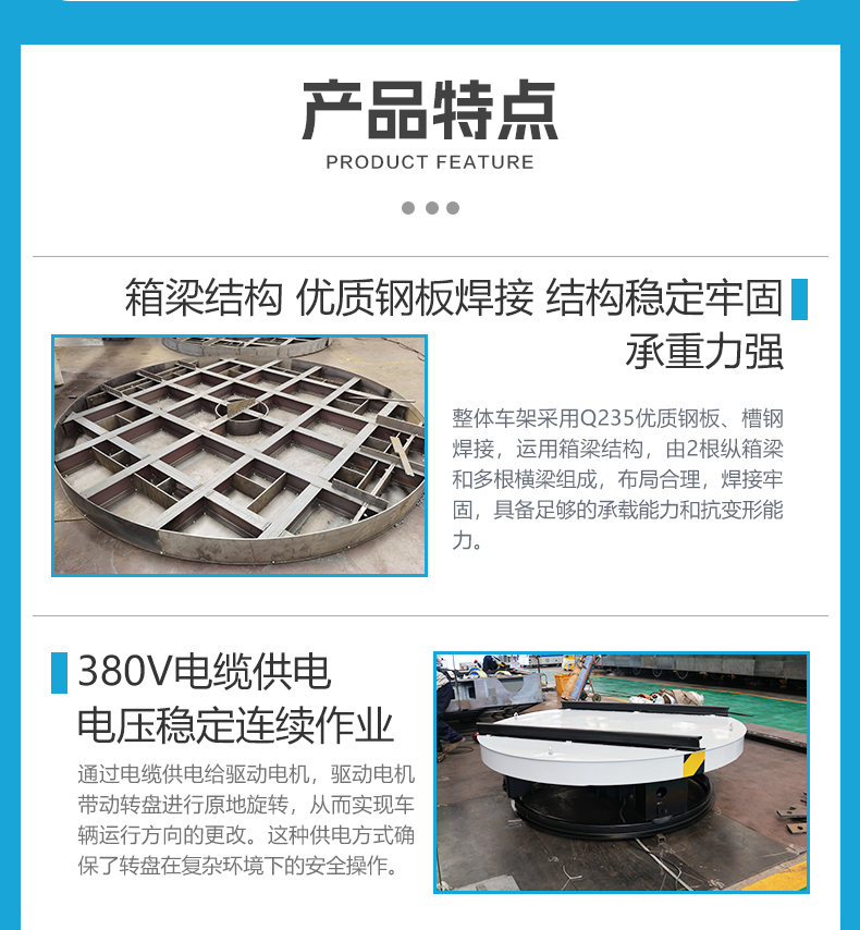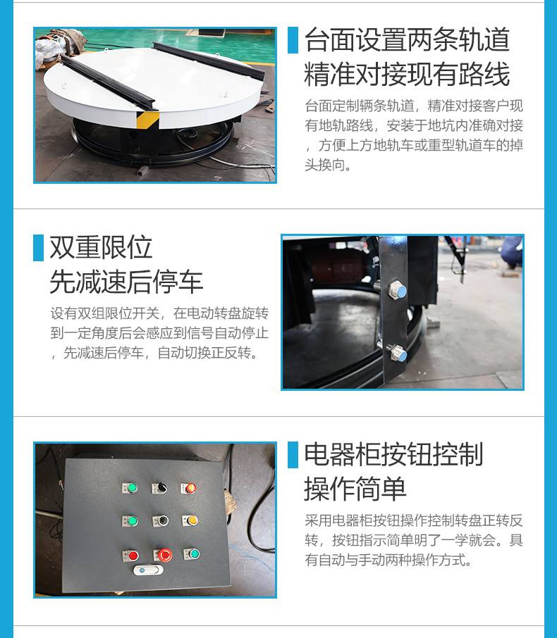 描   述: 現(xiàn)代化物流轉(zhuǎn)運(yùn)、車輛調(diào)度及工業(yè)生產(chǎn)環(huán)節(jié)中,電動(dòng)轉(zhuǎn)盤作為一種原地旋轉(zhuǎn)的換向設(shè)備,可助力軌道車平穩(wěn)、智能的進(jìn)行掉頭換向作業(yè)。