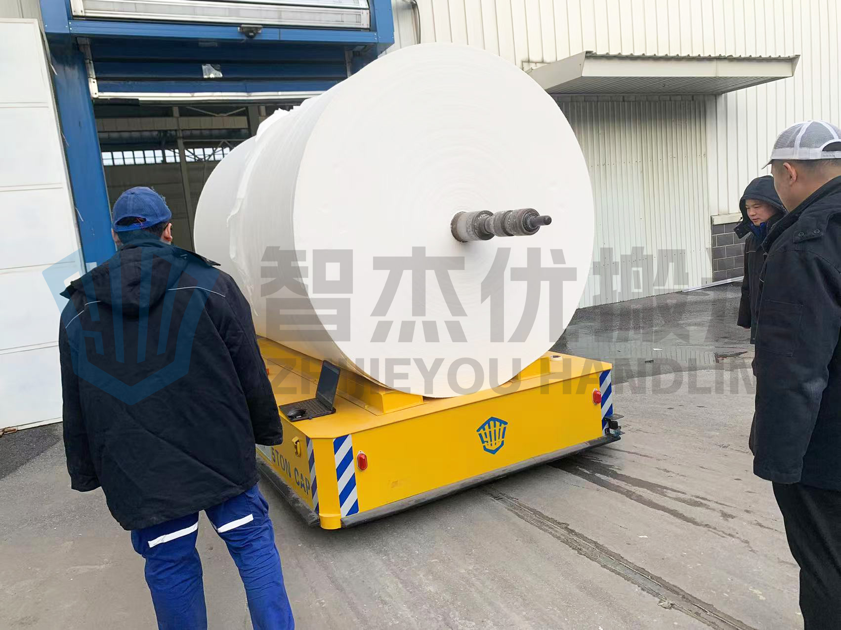 智杰優(yōu)搬運為遼寧某紙制品制造業(yè)研發(fā)定制的AGV運卷車已到達客戶現(xiàn)場,電氣工程師前往現(xiàn)場進行AGV自動模式的調(diào)試,調(diào)試順利完成車輛已投入使用。