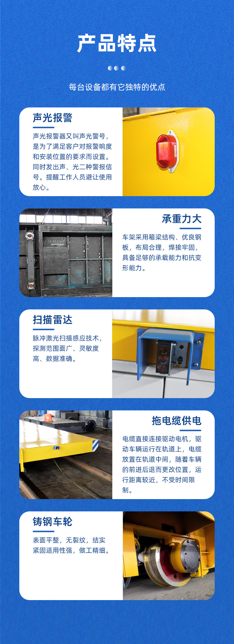 公司保障:電動平車、軌道平車的承重安全系數(shù)不低于60%