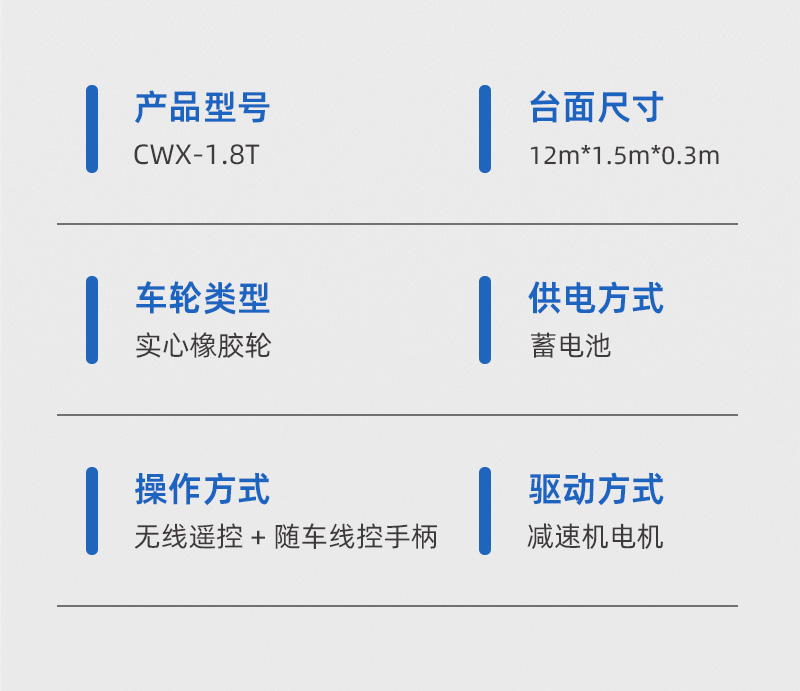 描   述: 智杰優(yōu)搬運(yùn)研發(fā)制造的12米液壓轉(zhuǎn)向無軌搬運(yùn)車,長(zhǎng)12米寬1.5米高0.3米額定載重1.8噸,超低臺(tái)面方便物料的裝卸,液壓轉(zhuǎn)向,轉(zhuǎn)彎輕便方便靈活穩(wěn)定性好,具有無級(jí)變速,運(yùn)行速度可通過操控?fù)u桿力度控制操作便捷。