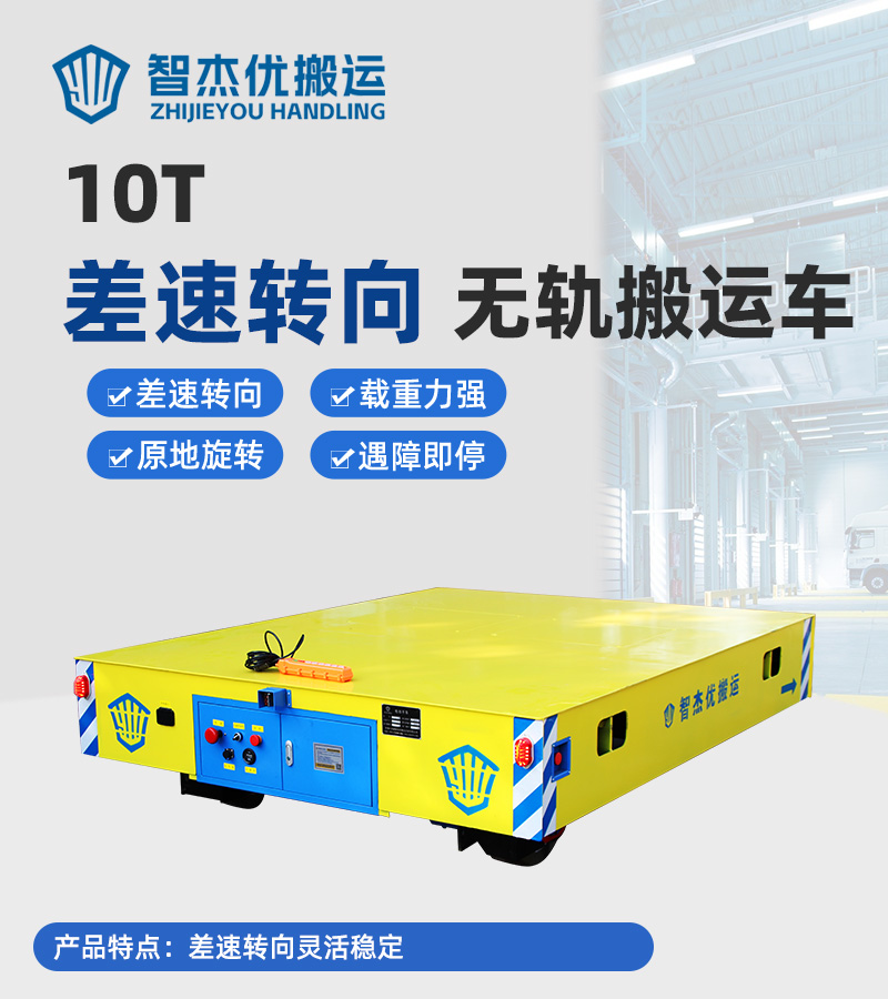 描   述: 差速轉(zhuǎn)向無軌電動平車,長2.5米寬2米高0..6米額定載重10噸,主要用于跨車間的工件轉(zhuǎn)運,蓄電池供電配備智能充電機,差速轉(zhuǎn)向轉(zhuǎn)彎靈活穩(wěn)定,自帶平衡梁遇到不平路段自動調(diào)節(jié)臺面平整度,具有一定爬坡過砍能力,同時具有自動避障功能。