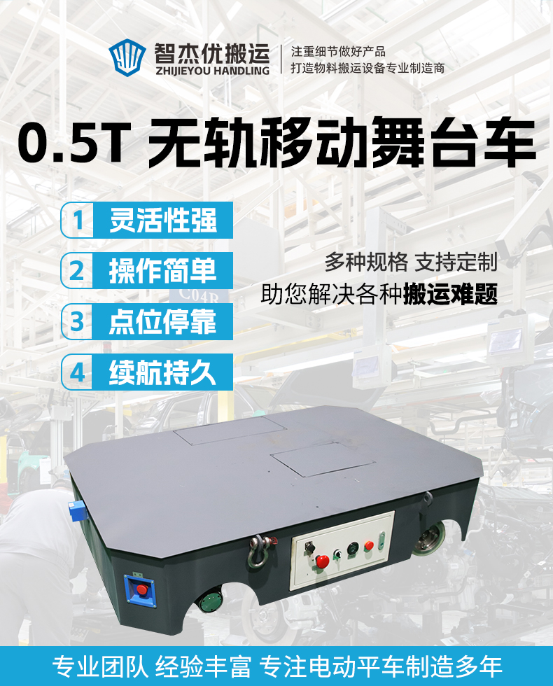 描   述: 這款專為舞臺藝術(shù)打造的蓄電池移動舞臺車,以1.8米*1.3米精巧車身0.4米超低平臺額定載重0.5噸,成為您幕后***調(diào)度的秘密武器!預(yù)設(shè)兩個關(guān)鍵點位,一鍵直達自動???,演員緩緩登場,賦予演出靈動生命力,適用于劇院、演唱會、電視臺演播廳、大型文藝晚會等各類需要***、安靜、可靠移動解決方案的場景。