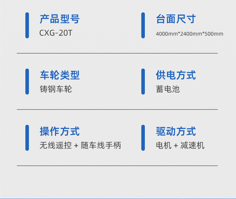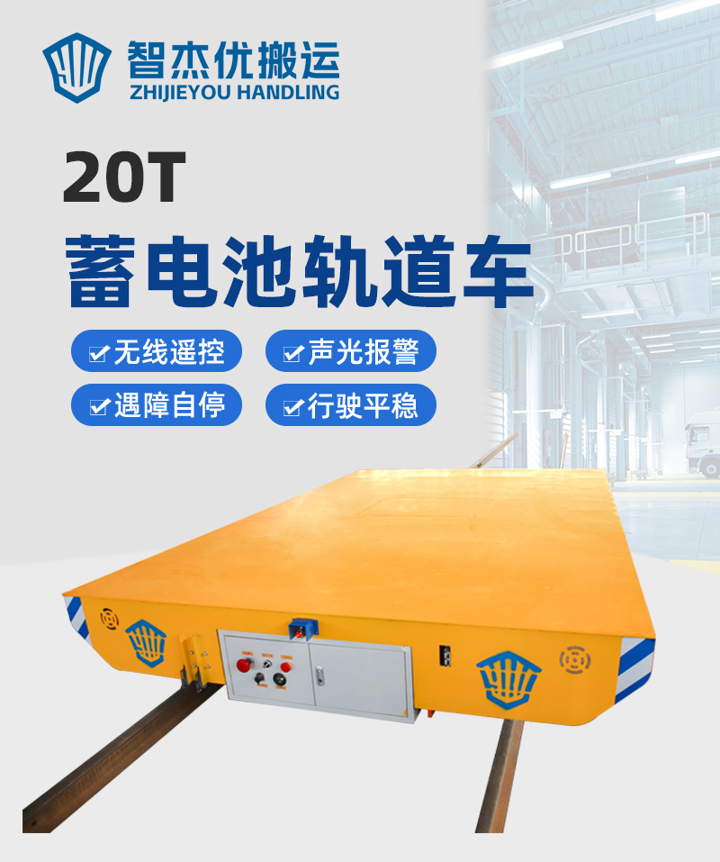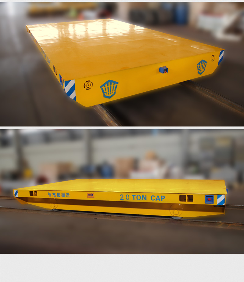 描   述: 這是一臺蓄電池軌道電動平車,該車長4米,寬2.4米,高0.5米,車架箱型梁焊接可載重20噸,蓄電池供電,運行距離不受限制,遙控器一鍵操作,可啟動、停止、前進、后退、調(diào)速等,設(shè)有雙限位開關(guān),可根據(jù)現(xiàn)場設(shè)定地點自動???,聲光報警保障安全,能夠在垂直軌道、L型軌道、S型軌道、弧形軌道及易爆、擺渡場合使用。