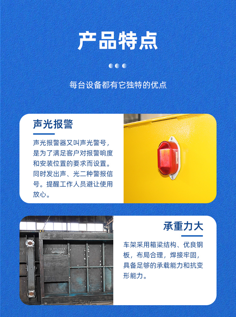 公司保障:電動平車、軌道平車的承重安全系數(shù)不低于60%