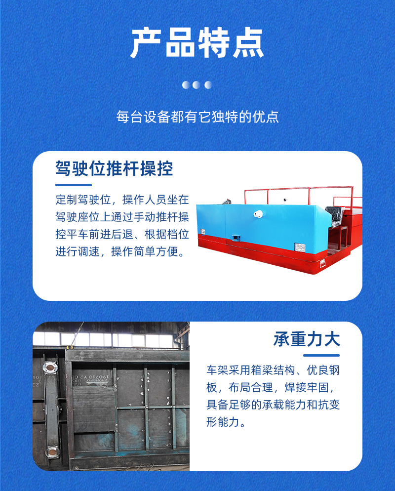 公司保障:電動平車、軌道平車的承重安全系數(shù)不低于60%