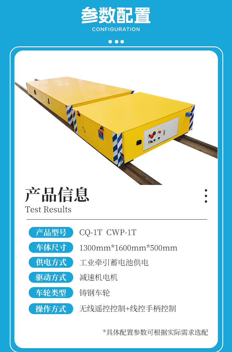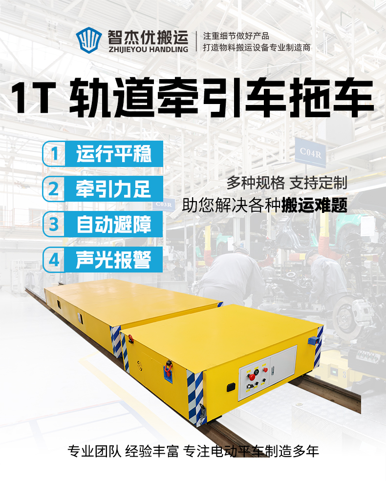 描   述: 電動軌道牽引車+無動力拖車車組,通過前方牽引車帶動后方無動力拖車及貨物平穩(wěn)運行。高強鋼車架箱梁結(jié)構(gòu)穩(wěn)定牢固。搭載高密度工業(yè)牽引蓄電池,結(jié)合高效減速機電機驅(qū)動系統(tǒng),輸出扭矩強勁穩(wěn)定,輕松牽引拖車及貨物。配備工業(yè)級無線遙控系統(tǒng),操作簡單方便。適用于噴漆房、噴砂房、地鐵隧道內(nèi)牽引施工材料及設(shè)備等工況。