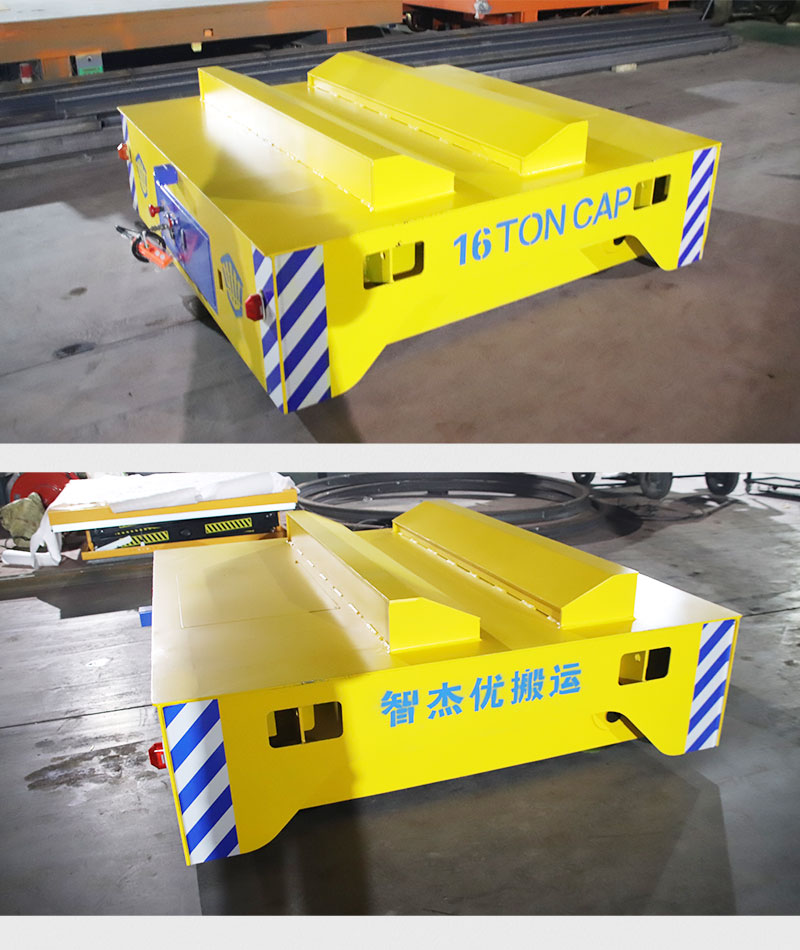 16噸鋼卷轉(zhuǎn)運(yùn)蓄電池?zé)o軌電動(dòng)平車 臺(tái)面加裝V型架