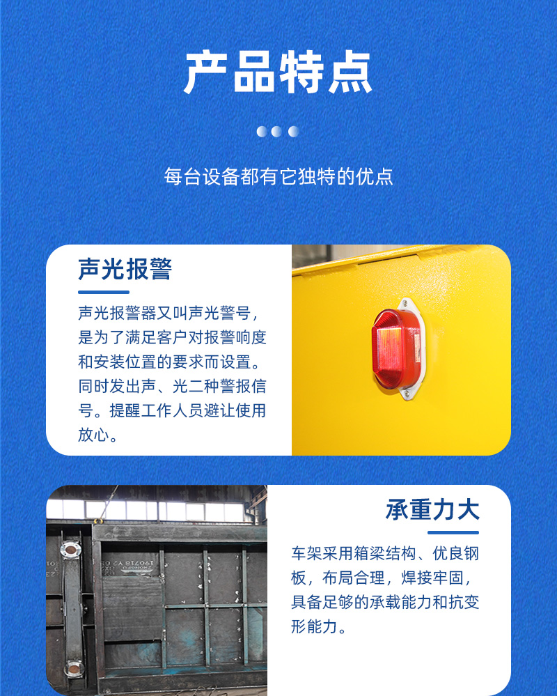 公司保障:電動(dòng)平車、軌道平車的承重安全系數(shù)不低于60%