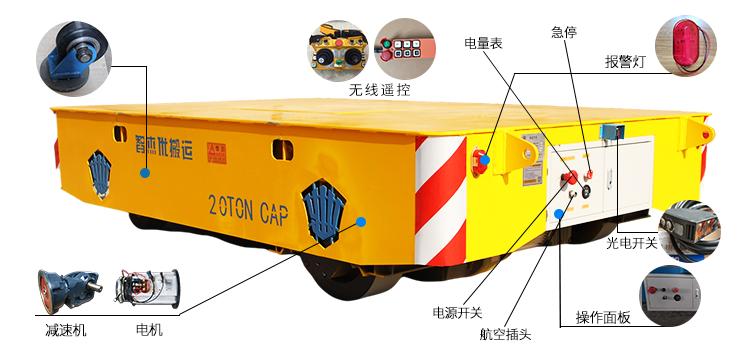 CWX無軌電動平車由電源、傳達(dá)機(jī)構(gòu)、鋼結(jié)構(gòu)承重架、轉(zhuǎn)向系統(tǒng)、行走機(jī)構(gòu)、控制模塊以及故障診斷模塊組成。通常,我們選擇蓄電池、電纜、電機(jī)作為該系列車的動力總成,電源經(jīng)過電器控制模塊系統(tǒng),給牽引電機(jī)提供電力,實(shí)現(xiàn)無軌電動平車的啟動、停止、前進(jìn)、后退和轉(zhuǎn)向記憶其他功能。