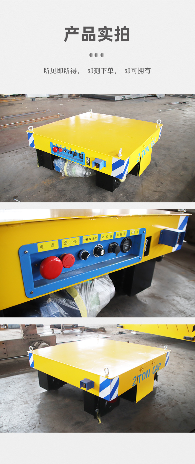 這是一臺小型軌道搬運(yùn)車載重試機(jī)現(xiàn)場,整車長1.2米寬1.2米高0.45米載重2噸,箱梁結(jié)構(gòu)穩(wěn)定牢固,不易變形;無線遙控平車前進(jìn)后退,采用鑄鋼車輪,硬度高耐磨損承重力強(qiáng),電機(jī)減速機(jī)驅(qū)動平車進(jìn)行搬運(yùn)作業(yè),限位開關(guān)可實(shí)現(xiàn)平車定點(diǎn)??孔鳂I(yè),前后配備光電檢測遇障自停,聲光報警保障安全,該系列電動平車還可進(jìn)行功能升級、升降臺面、弧形軌道運(yùn)行等。