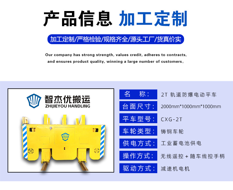 熱線:15517329551 防爆拖纜電動平車搬運車,配件的選用均符合防爆等級相關(guān)標(biāo)準,防爆型蓄電池作為電源,防爆電機減速機作為驅(qū)動系統(tǒng),由手持式操作手柄(線控或遙控)實現(xiàn)平車的啟動、停止、前進、后退、左移、右移、轉(zhuǎn)彎等功能。