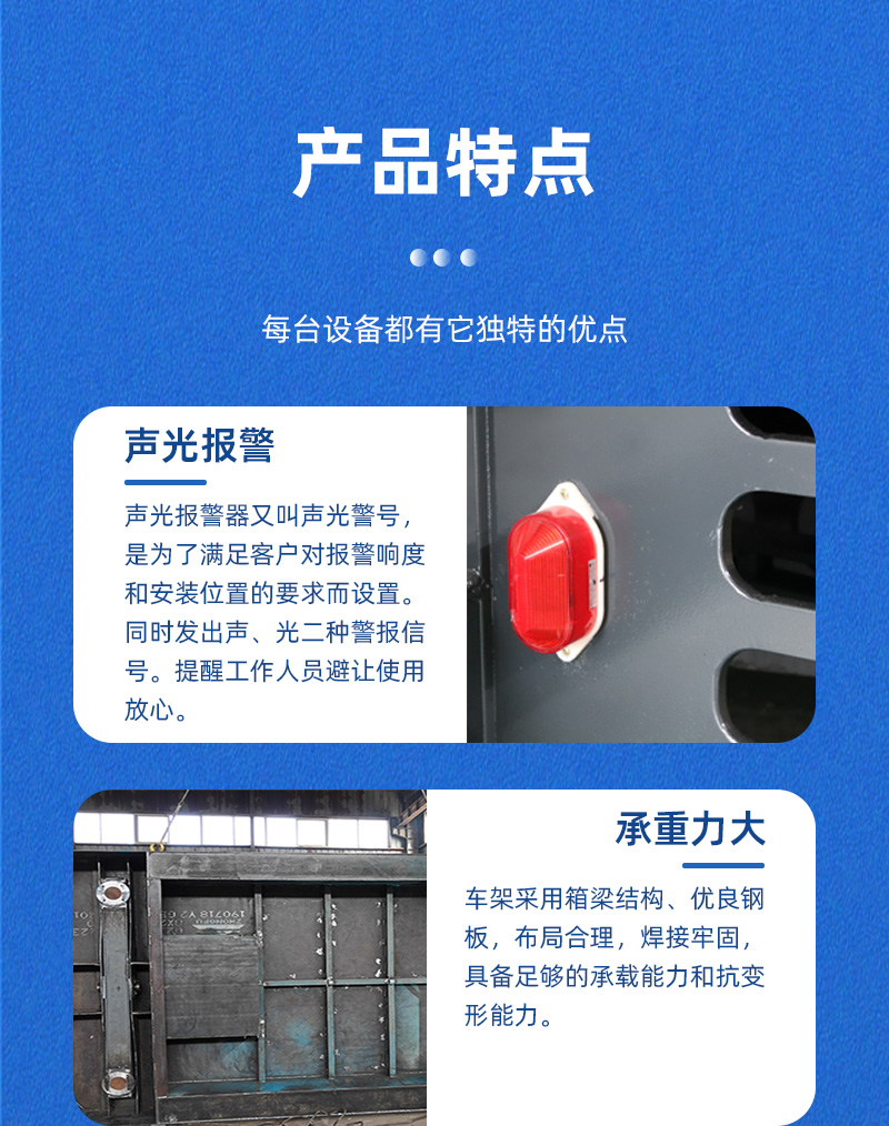 公司保障:電動(dòng)平車、軌道平車的承重安全系數(shù)不低于60%