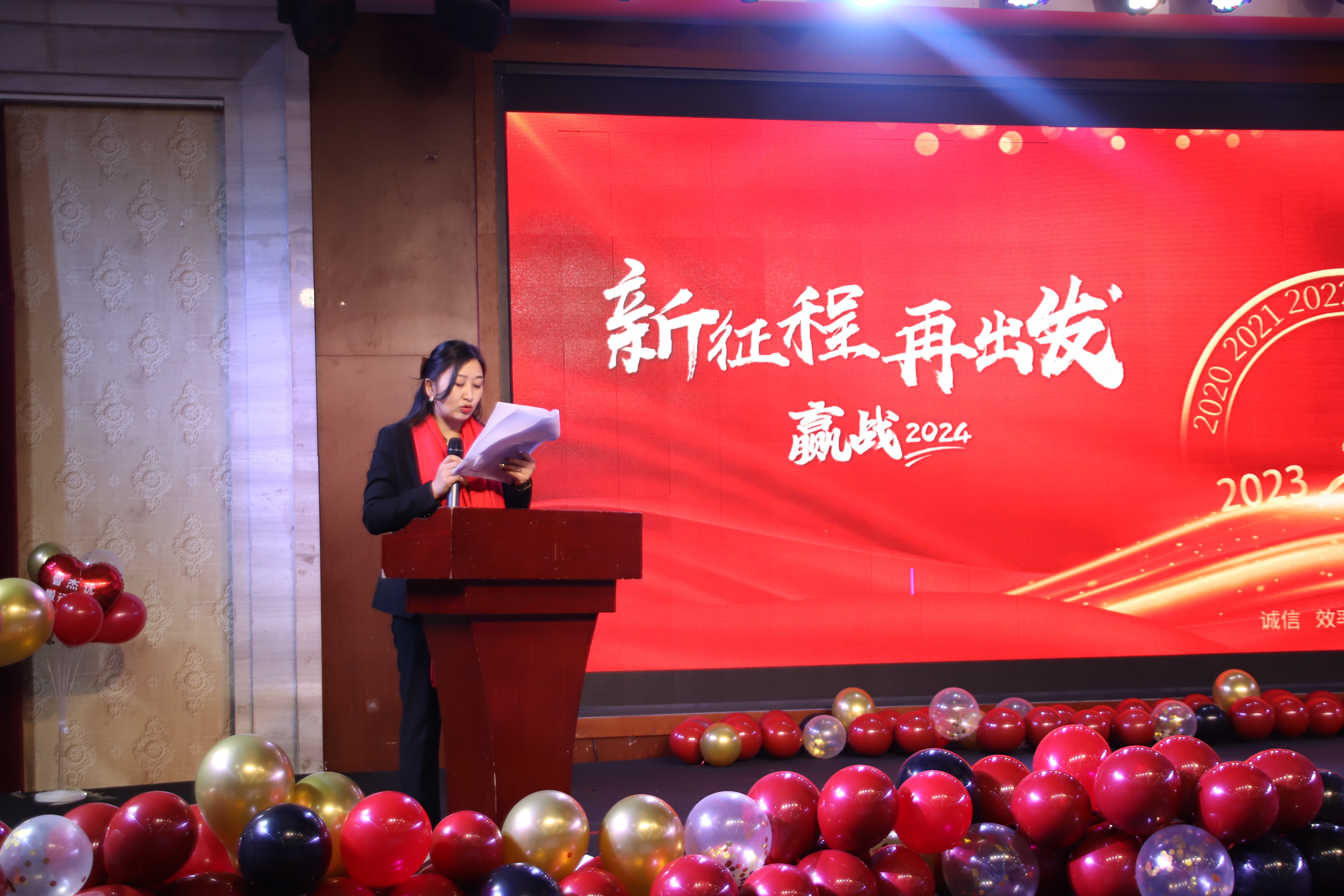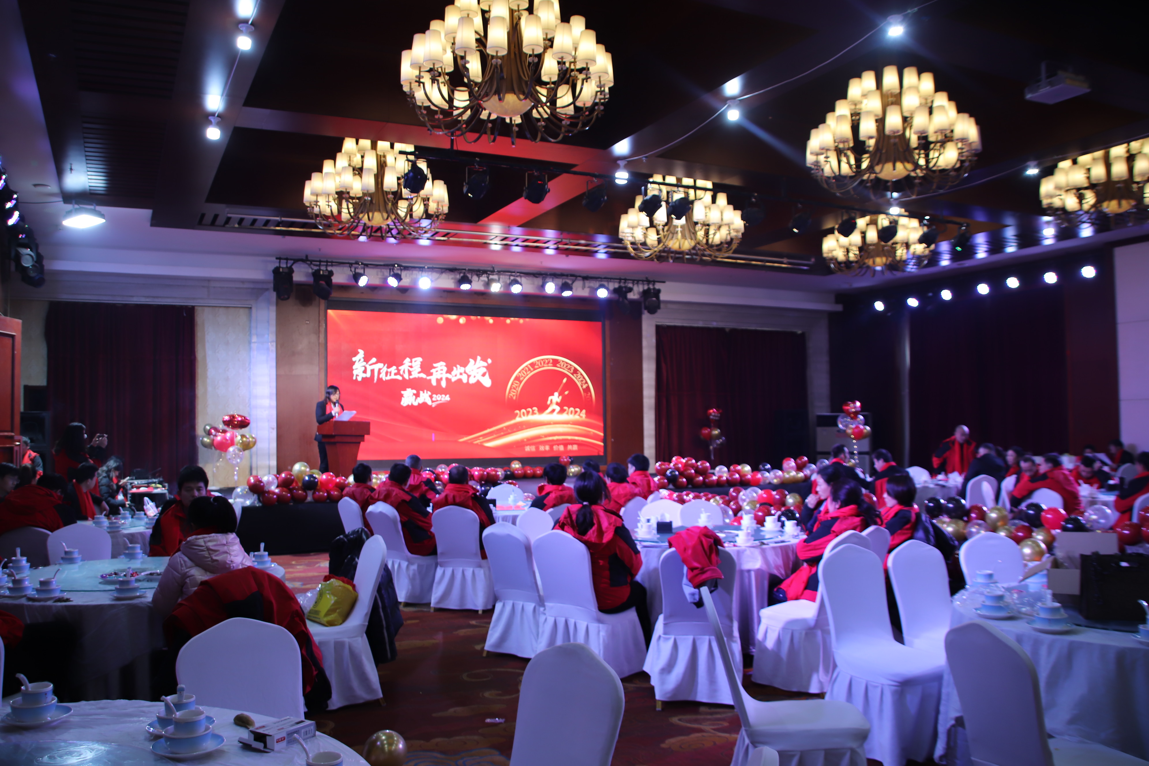 群賢畢至,巨幕盛啟。由集團(tuán)公司總經(jīng)理為本次盛典致開幕詞。萬物問新,聚勢而生。由副總經(jīng)理向全體員工致2024年新年致辭。厚積薄發(fā)砥礪前行。伴著科技動(dòng)感的《朋友的酒》,主持人以奮進(jìn)激昂的開場詞拉開本次盛典的序幕。