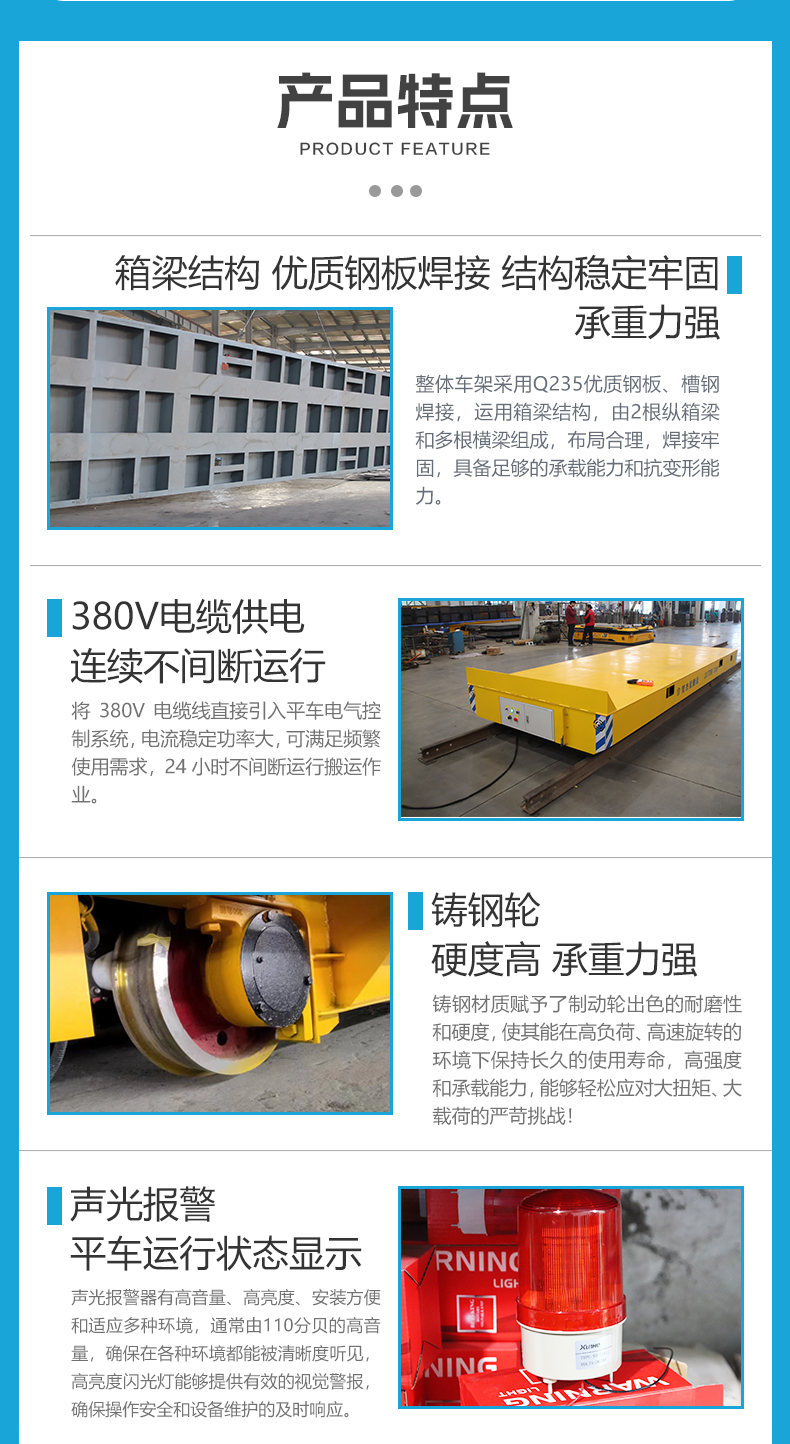 公司保障:電動平車、軌道平車的承重安全系數(shù)不低于60%