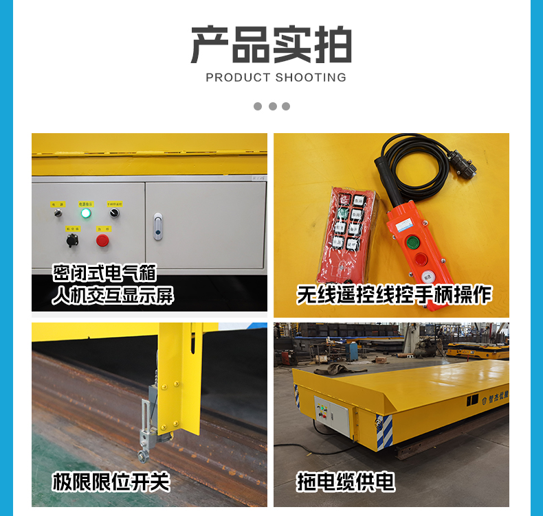 描   述: 20噸拖電纜軌道搬運車,整車長5米寬2米高0.5米額定載重20噸,客戶主要用于鋼結(jié)構(gòu)的搬運。車架箱梁結(jié)構(gòu),優(yōu)質(zhì)鋼板焊接耐摔耐砸結(jié)實耐用,采用拖電纜供電24小時連續(xù)作業(yè),無線遙控控制平車前進后退操作簡單便捷,車尾加裝擋板方便貨物放置,電機減速機驅(qū)動平車運行驅(qū)動力足,電磁制動斷電自動剎車。前后設(shè)置極限限位開關(guān),觸碰設(shè)置鐵塊自動停車防止軌道車沖出軌道確保安全運輸,具有欠壓、過壓、過流、短路等防護!