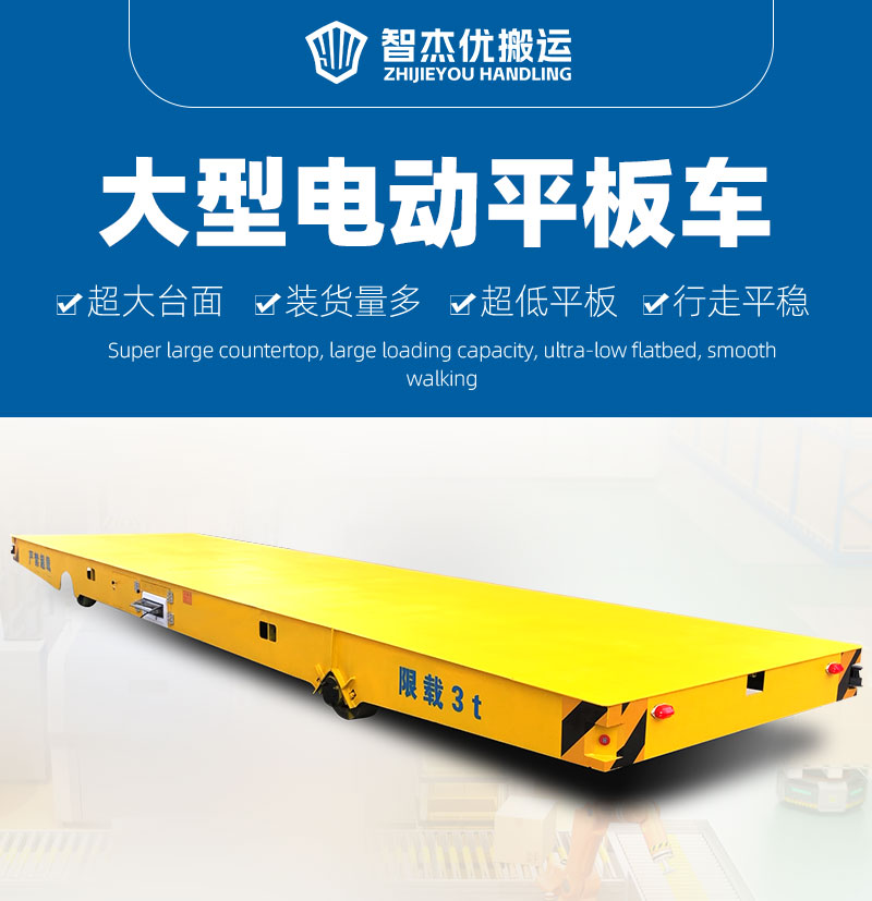 3噸大型電動平板車,超大臺面設計能夠裝較多的貨物,適合于體積大重量小物料搬運,載重3噸車架選用優(yōu)良鋼板拼裝焊接,箱梁結構科學設計保障承載重量數(shù)值,專用牽引蓄電池供電,有效延長減速機使用壽命,車體機械懸掛、平衡結構自動調(diào)節(jié);多種剎車方式可供選擇,聚氨脂包膠輪胎無須充氣更加便捷,耐磨耐撕防刺有效提高工作效率。操作方式可無線搖控也可在線手柄操控;車身裝有聲光報警、激光感應,時刻提醒現(xiàn)場人員避讓,遇到障礙自動停車;儀表實時顯示電量使用情況,電器內(nèi)部多重保護有效避免過載欠壓過流造成電器元件故障。根據(jù)工況條件可定制特殊結構、載重500噸以下的機型。