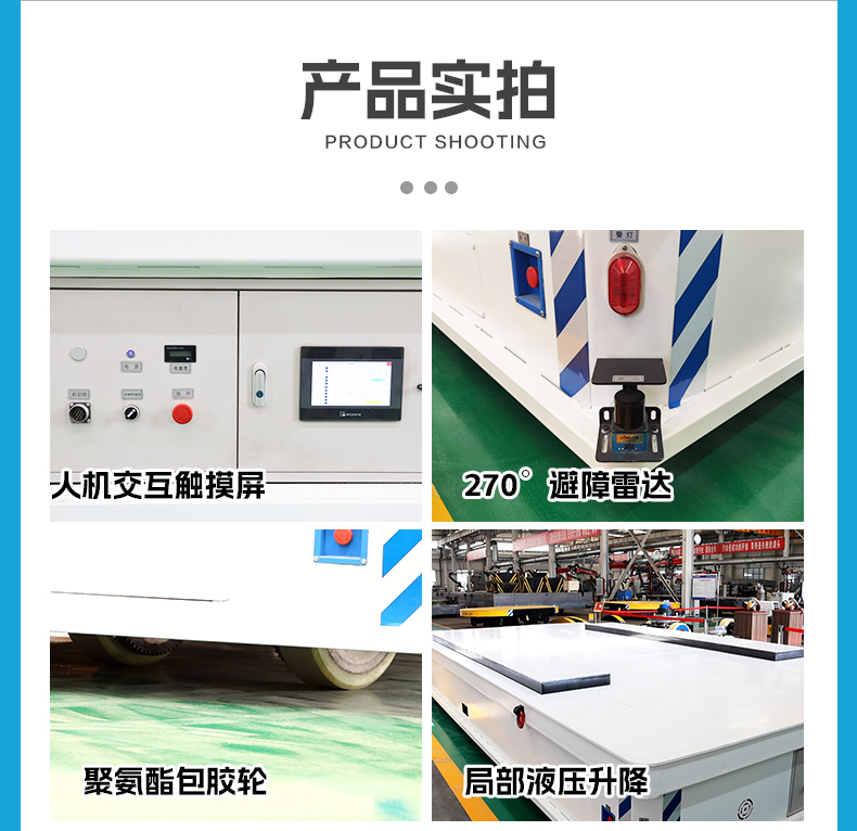 描   述: 20噸舵輪升降全向無(wú)軌車,6米*3米大平臺(tái)設(shè)計(jì)20噸額定載荷輕松承載重型設(shè)備、大型模具等物料過(guò)跨轉(zhuǎn)運(yùn)。搭載差速舵輪系統(tǒng),伺服電機(jī)行星減速機(jī)配合高精度編碼器控制輕松應(yīng)對(duì)狹窄通道、復(fù)雜路徑轉(zhuǎn)彎半徑小,具備全向移動(dòng)能力-縱橫移動(dòng)、米字斜行、原地旋轉(zhuǎn),臺(tái)面定制局部液壓升降行程100mm,可針對(duì)貨物進(jìn)行局部抬升調(diào)節(jié),磷酸鐵鋰電池組供電續(xù)航持久,人機(jī)交互觸摸屏,運(yùn)行參數(shù)實(shí)時(shí)監(jiān)控,大范圍雷達(dá)檢測(cè),實(shí)時(shí)感知周圍環(huán)
