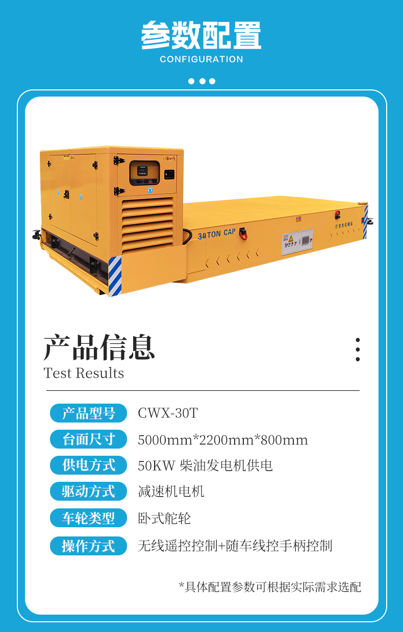 柴油發(fā)電機(jī)供電全向無軌轉(zhuǎn)運(yùn)車