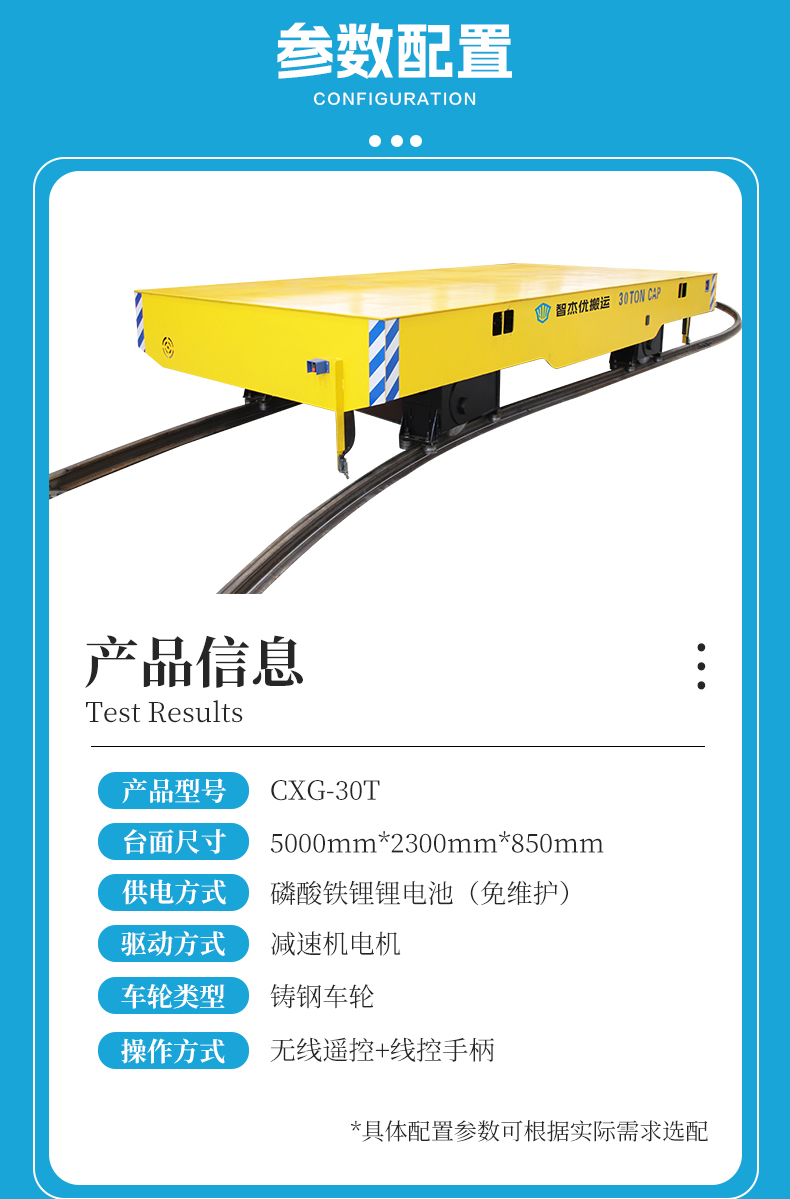 熱線:15517329551 30噸鋰電池轉(zhuǎn)彎軌道搬運車,整車長5米寬2.3米高0.8米額定載重30噸,車架箱梁結(jié)構(gòu),優(yōu)質(zhì)鋼板焊接結(jié)實耐用,客戶用于鑄造件的跨車間運輸,運行路線有上坡轉(zhuǎn)彎路段,驅(qū)動輪加裝輔助轉(zhuǎn)向?qū)蜉喚哂修D(zhuǎn)彎功能,離地間隙大具備爬坡能力,鋰電池供電容量大充電快,無線遙控操作簡單方便,30噸大載重滿足車間來回轉(zhuǎn)運物料需求,運行速度0-20m/min,安全裝置設(shè)置極限限位開關(guān)防止軌道車沖出軌道,光電檢測遇到障礙自動停車。